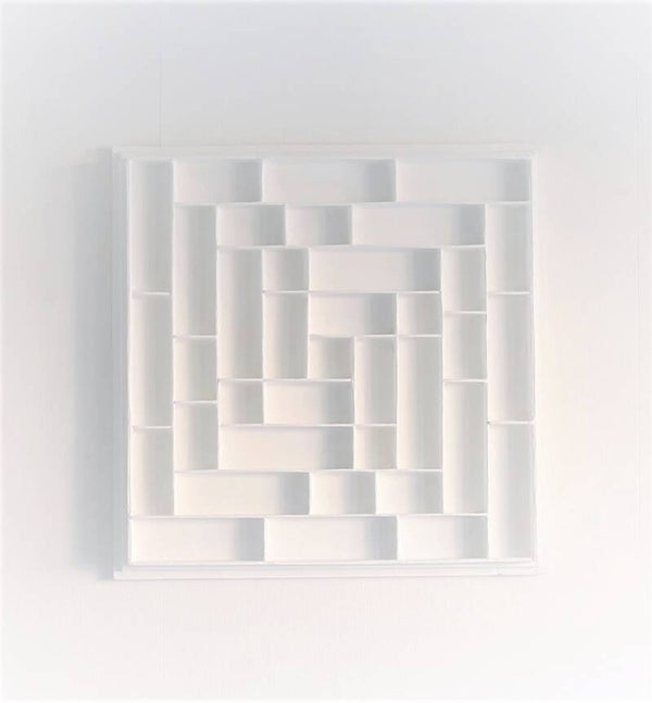 Original abstract white 3d painting. Modern art in the style of Bauhaus and the zero group of the sixties.