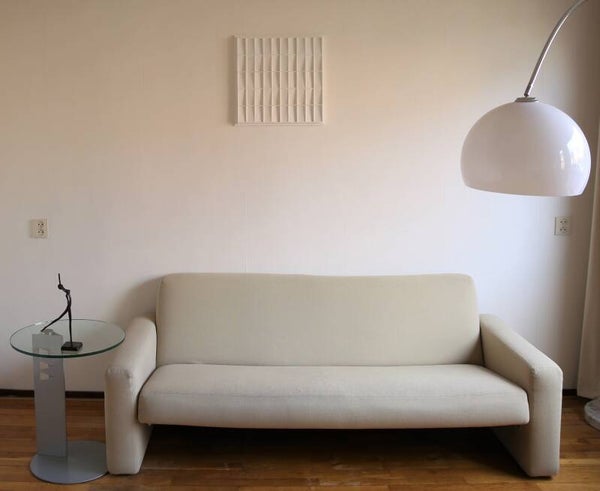 Minimalist modern art handmade in the style of Bauhaus and Jan Schoonhoven. Bright white contemporary. Own design.