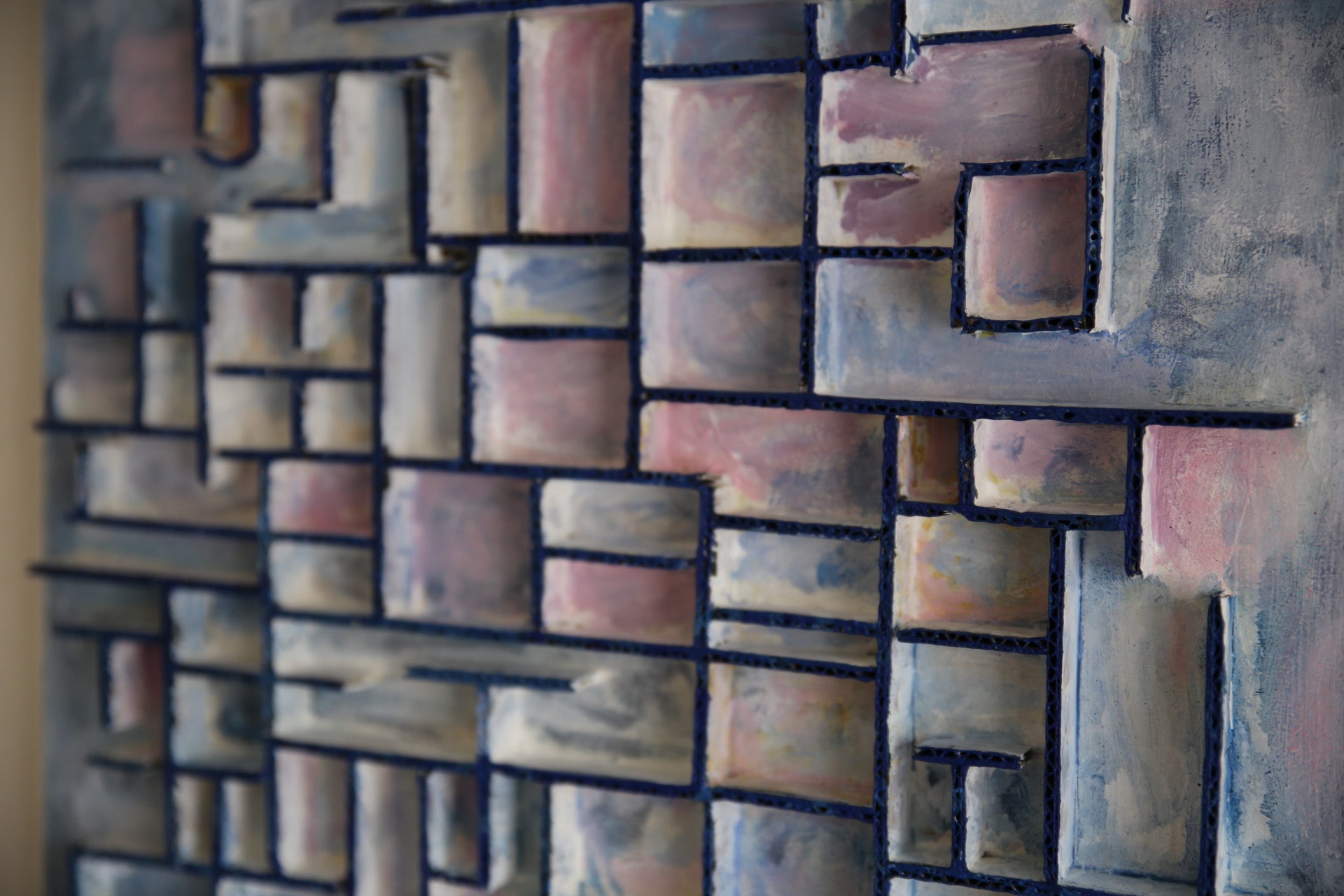 Cardboard, acrylic paint on wooden frame. Handmade.
