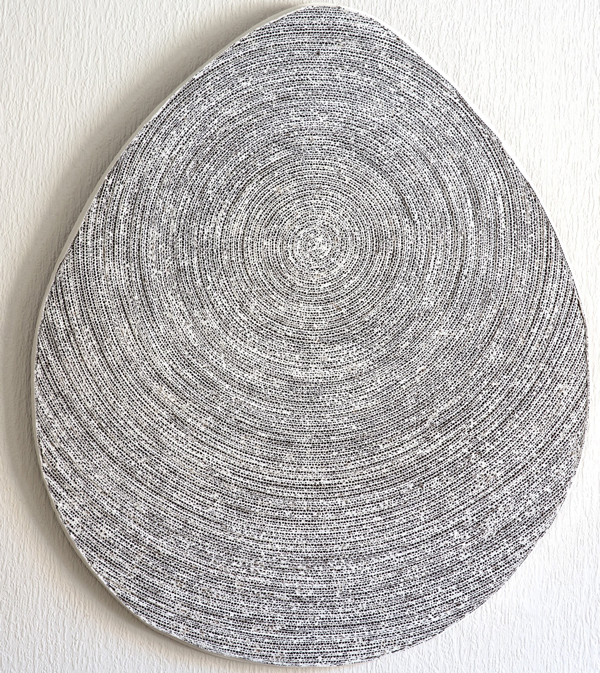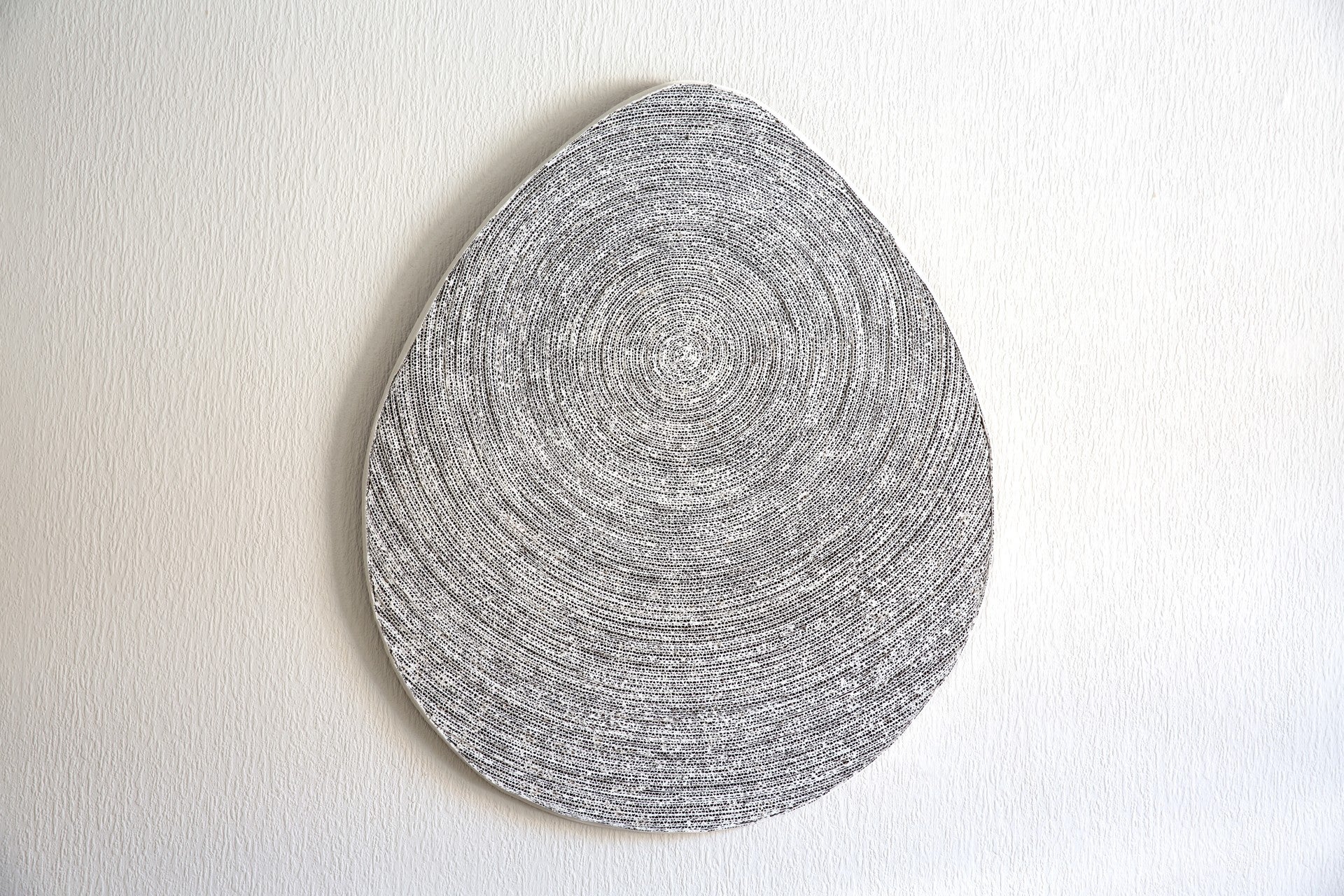 White egg scuplture of cardboard on wooden frame. in the shape of an egg. Handmade in the shape of an egg. Own design.