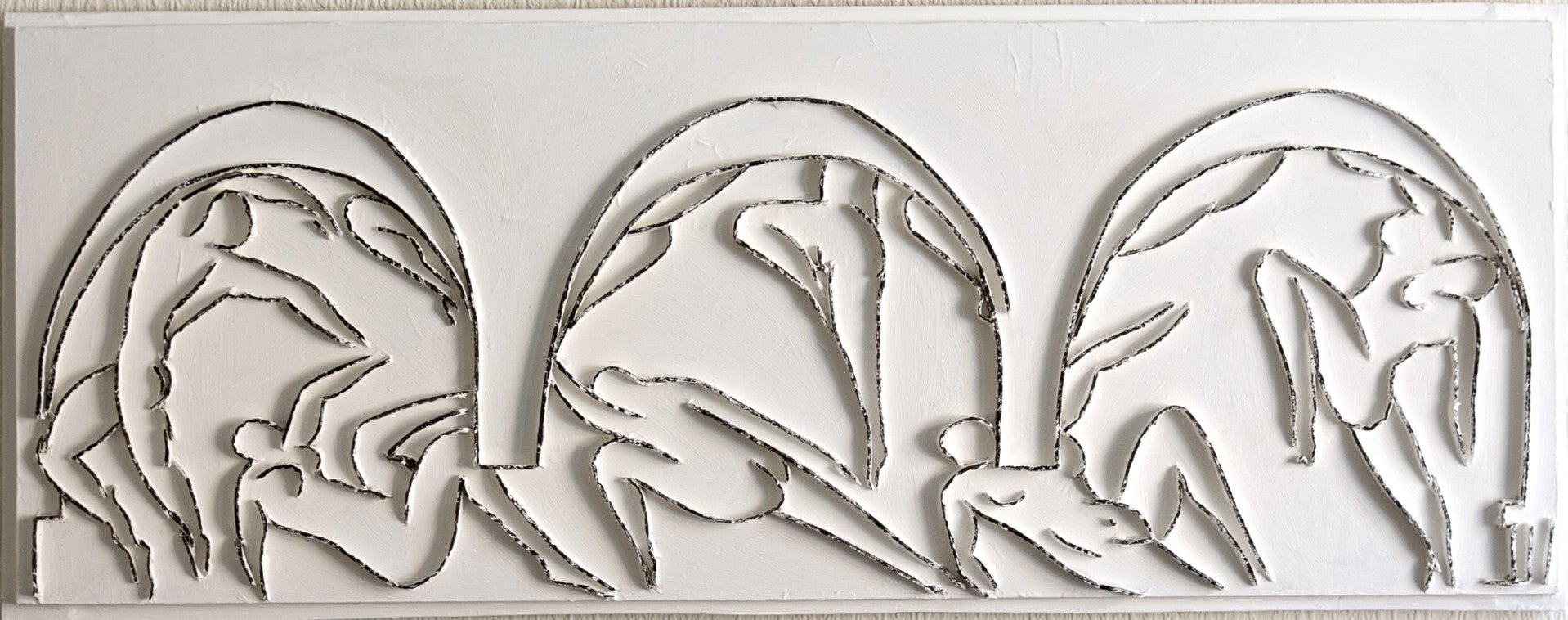 Figures with arches. Henri Matisse. Handmade white 3d painting.